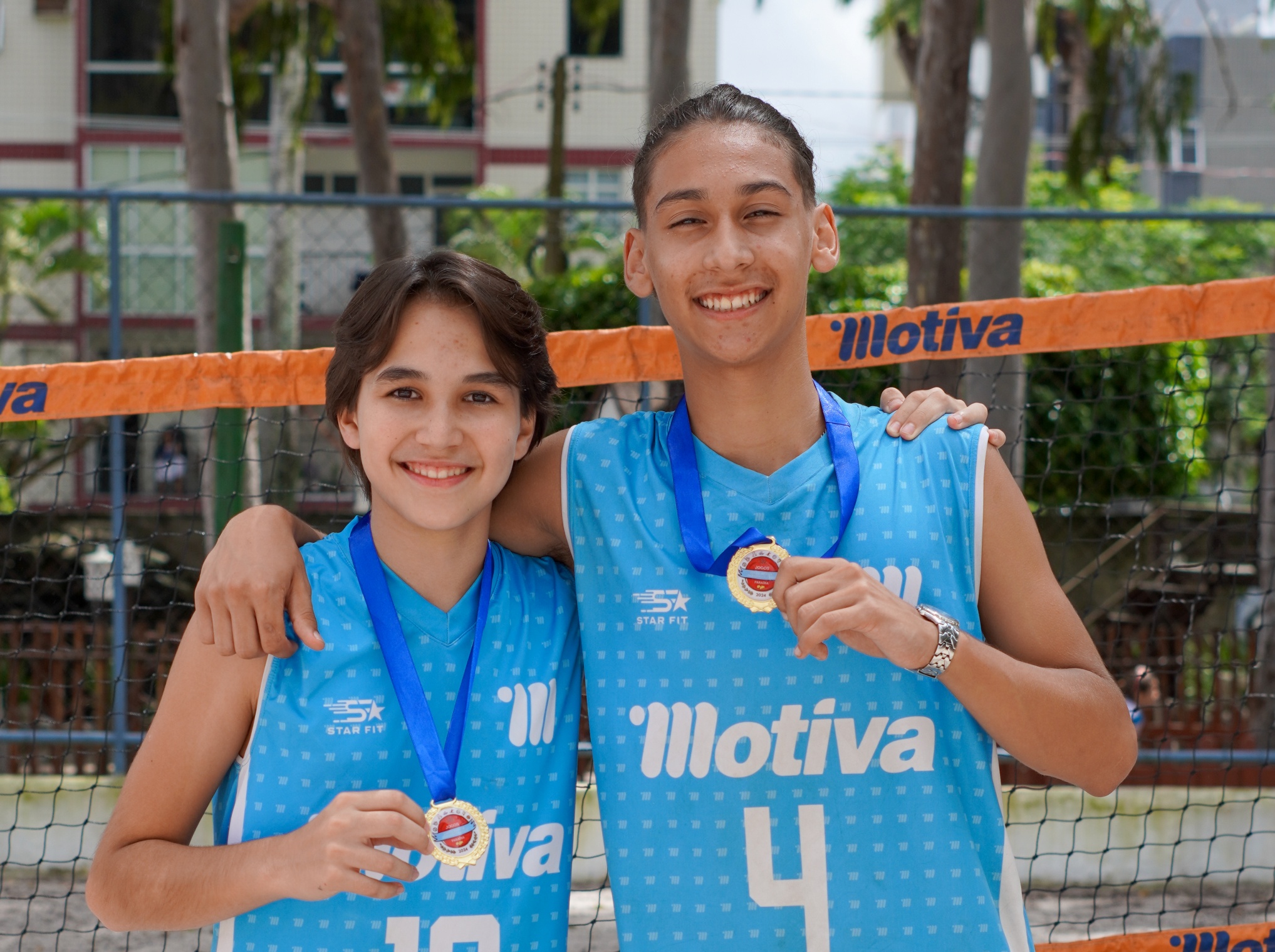 Os atletas Luís Estevam Porto e Isaque Barbosa foram campeões no Vôlei de Dupla da edição 2024 dos Jogos Escolares, na categoria sub 14 masculino, durante a competição realizada no último sábado (4), no Clube Campestre, em Campina Grande.